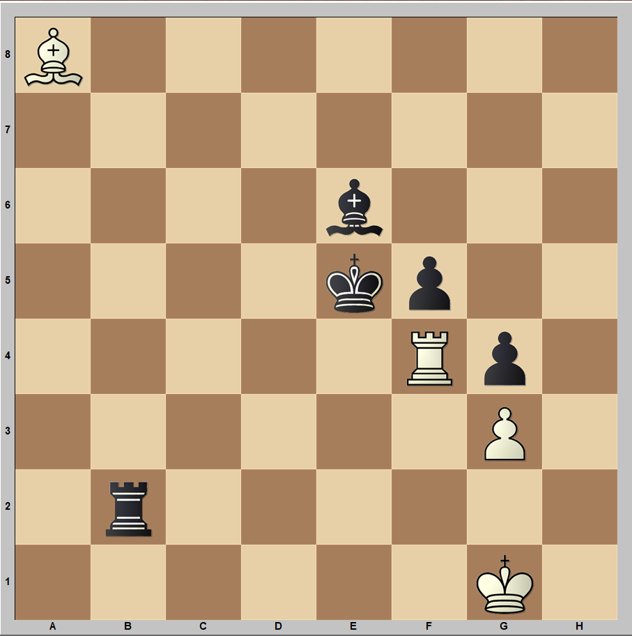 White has a drawn position, just some accuracy is required but pretty much any move, except the game move, draws. In the game, Ding played a careless 55.Rf2?? and lost after 55…Rxf2 56.Kxf2 Bd5! forcing the winning K+P endgame.