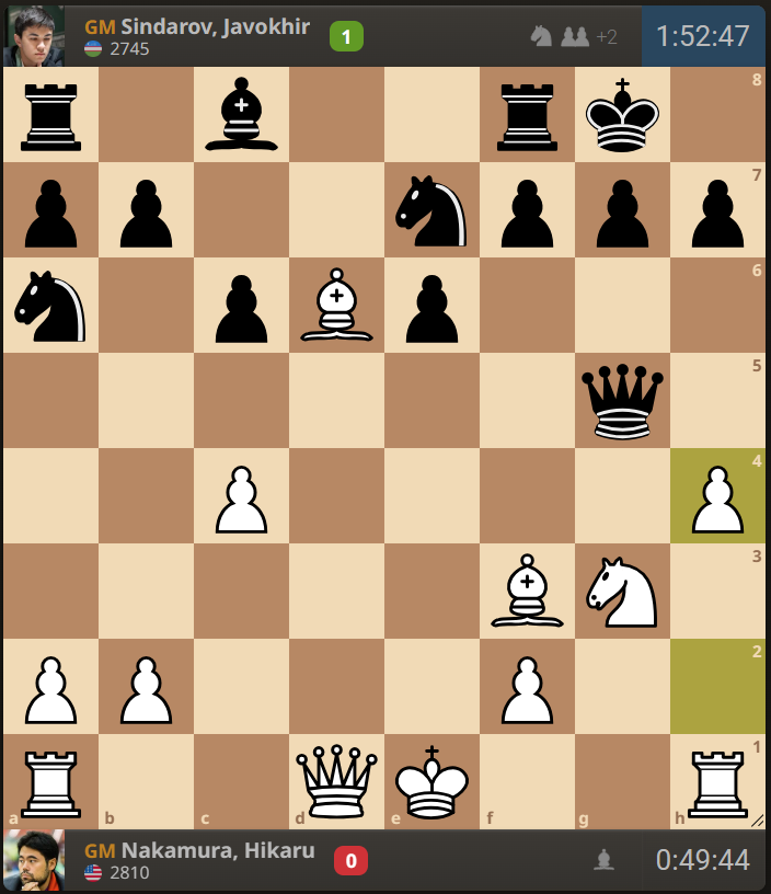 What’s even more impressive is he totally outprepared the two Americans, Fabi & Naka, crushing both of them back-to-back. Just take a look at the time usage by Sindarov in these positions: