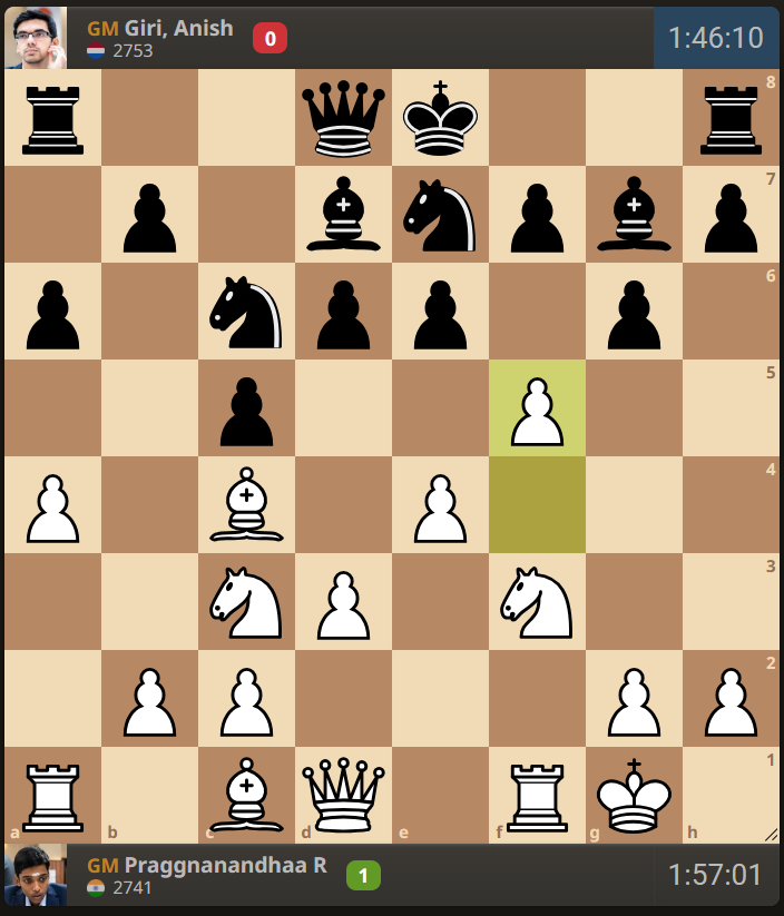 Even though the engine doesn’t think highly of White’s setup, you can clearly see that Black would be uncomfortable facing the attack. Giri defended well for a while, but got low on time, misplayed the endgame and lost without a fight.